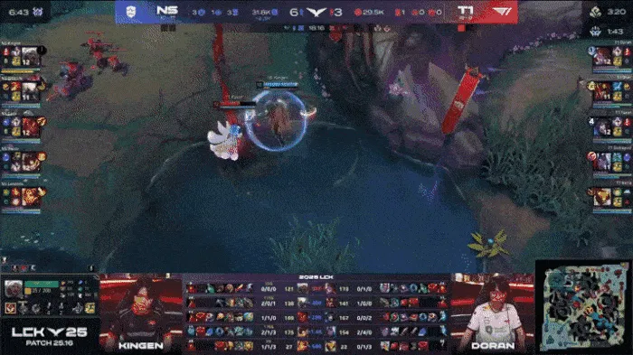 比赛第22分钟,Doran阿萝拉率先阵亡,NS厄塔汗团先后打出1换4大胜。