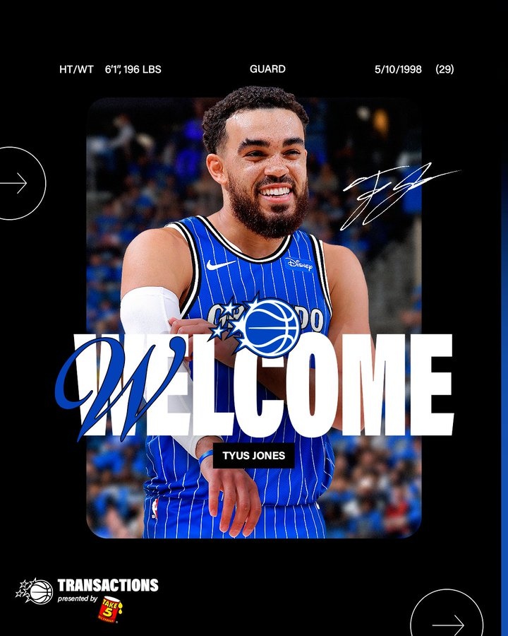 据此前名记Shams报道,,泰厄斯-琼斯1年700万加盟魔术。ESPN薪资专家Bobby Marks表示,魔术是用部分全额中产(全额中产为1410万)签下的琼斯,因此魔术触发硬帽。