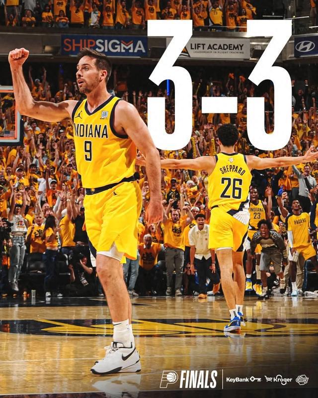 九年前的今天,欧文就投进了这样一记决定整个赛季冠军归属的三分,那场比赛最后三分钟的诸多细节我依然能够想起。在那之后,总决赛再也没能打到抢七,直到今年,直到今天,步行者主场赢下雷霆,将总决赛又一次拖入抢七。